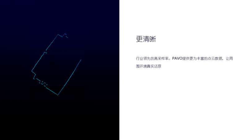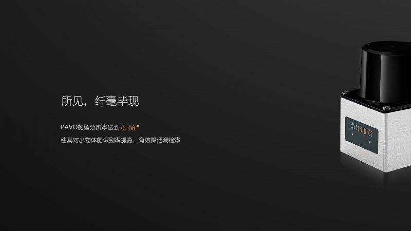 PAVO是由星秒科技(SIMINICS)研发的高性能激光雷达产品。采用飞行时间(TOF, Time of Flight)原理设计,通过对激光脉冲反射过程的精密时间测量,获得高精度的距离信息,配合电机旋转完成对周围环境的二维扫描。 PAVO可实现30m范围内的可靠测量,角度范围270°。得益于TOF方案优势和SIMINICS特有的高性能时间测量技术,PAVO表现出远高于三角法雷达的测距性能,即便是对30m处的白板测量,也可获得±30 mm的测距精度。 PAVO提供业内顶尖的0.08°最小角分辨率,实现对周围环境的精细还原。用户可以通过配置改变电机转速,从而使输出的点云图像帧率在10-30Hz范围内调节。PAVO提供精细角分辨率的同时也提供了高采样率,从而使其对微小目标的识别能力大大增强,有效降低漏检率。