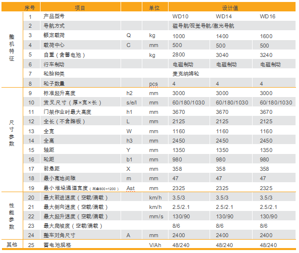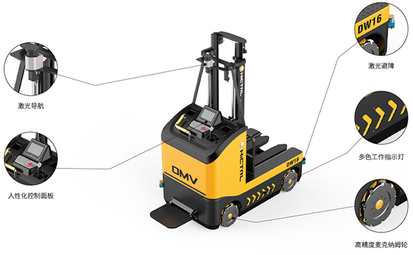 颠覆传统叉车概念,零回转半径,侧移,全方位无死角,任意漂移,告别传统驾驶模式,可选配遥控器轻松操作,人身安全更有保障。新一代全向背负式堆垛车;麦克纳姆轮全方位任意全向移动; 搭载激光自动导航系统;设备运行时有声光警示;并设有系统故障诊断及电量显示功能;具备无人化、无线遥控功能;手动遥控定位精度达到±0.5mm; 窄巷道运行提升仓储空间;控制面板显示屏实时状态显示,并显示故障信息。