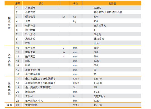 可以牵引不同类型的工作台车与仓储笼,非标定制不同起升高度 (210~650mm);手动遥控定位精度达到±0.5mm;激光避障传感器消除安全隐患,通过激光导航、磁导航、视觉导航实现智能无人化;安装专用属具,适应不同工况,选配铅酸蓄电池或锂电池。
