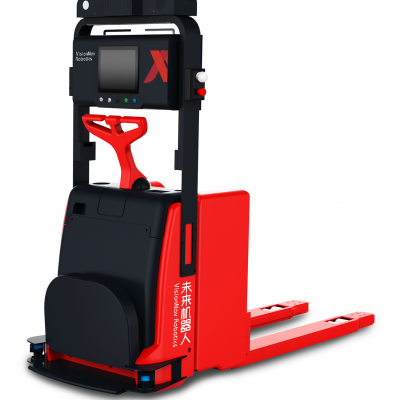 未来机器人托盘式无人叉车VNT 30,基于VisionNav视觉无人驾驶平台,可实现全自动无人化搬运和出入库,主要应用于仓库与车间的水平搬运及货物装卸,额定载重2T,最高运行速度2m/s,可一键切换人工/自动驾驶模式