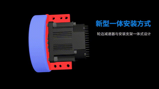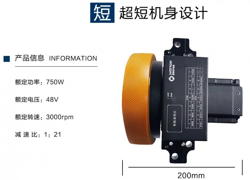 后背式伺服轮驱模组的驱动器安装在电机后面,电机采用超短机身设计,同时安装支架设计在轮边减速器上,大大减少了对电机的径向负载,延长了电机的使用寿命。