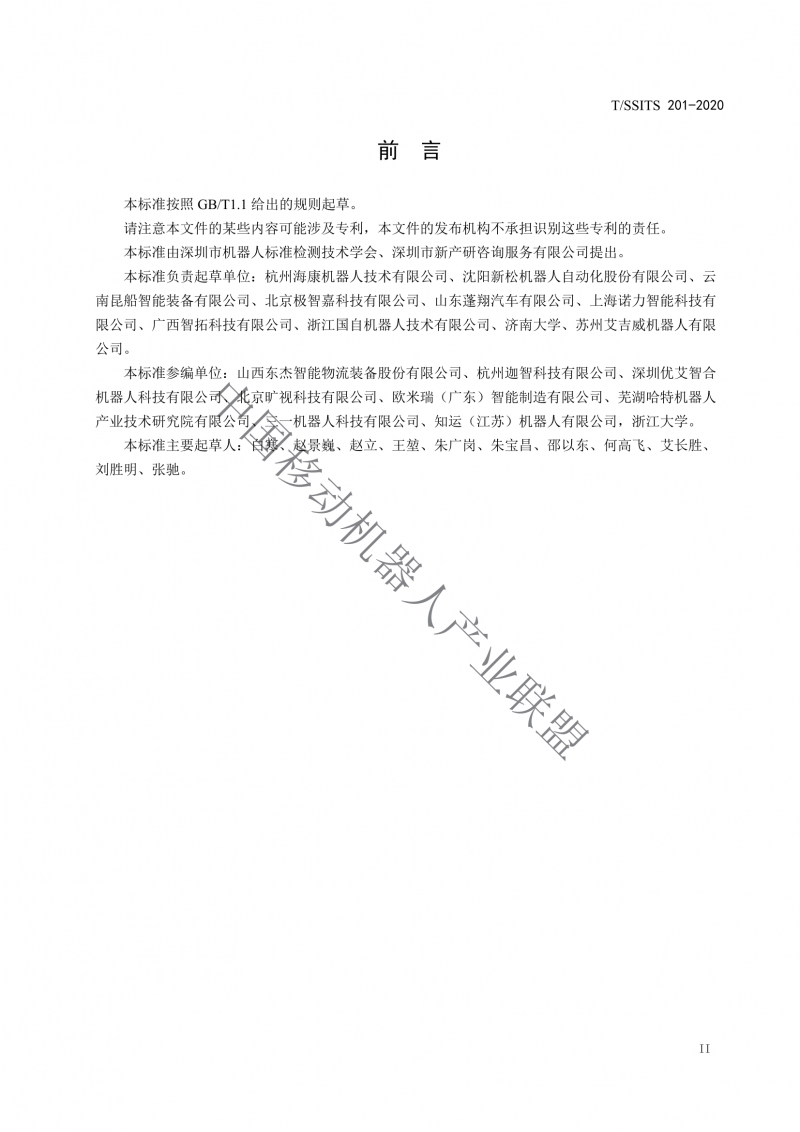 本标准参编单位∶山西东杰智能物流装备股份有限公司、杭州迦智科技有限公司、深圳优艾智合机器人科技有限公司、