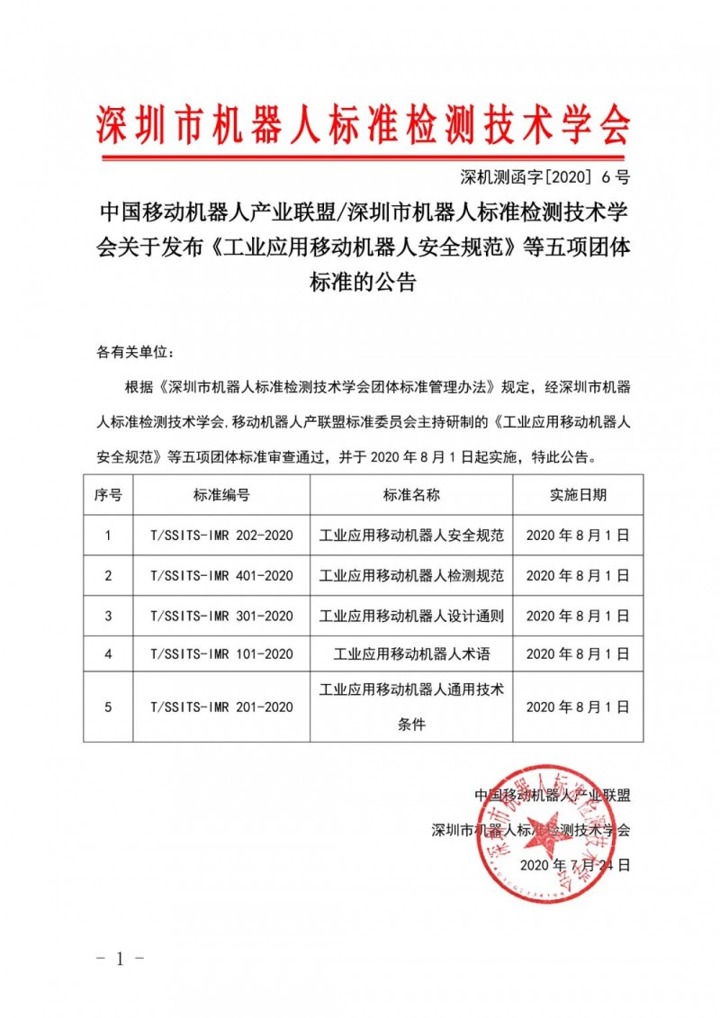 尊龙凯时关于发布工业应用移动机器人五项团体标准的公告