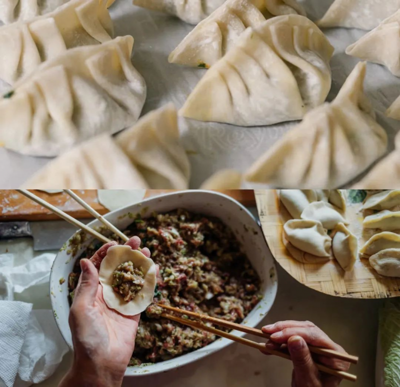 ▲留守员工集体包饺子