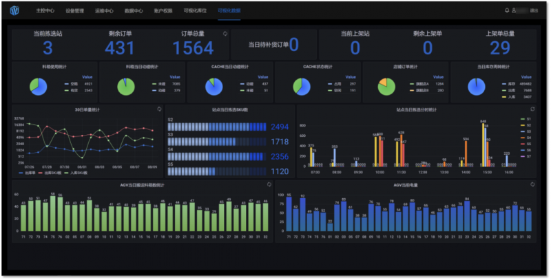 任务状态可视化、设备运行状态可视化、库位使用情况可视化。