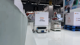 展会现场,所有的AMR机器人都由同一套调度管理系统CLOUDIA的指挥,在有限的展台空间内同场运行,相互协调,协同作业,实现狭窄空间内的异构机器人集群混场调度应用。