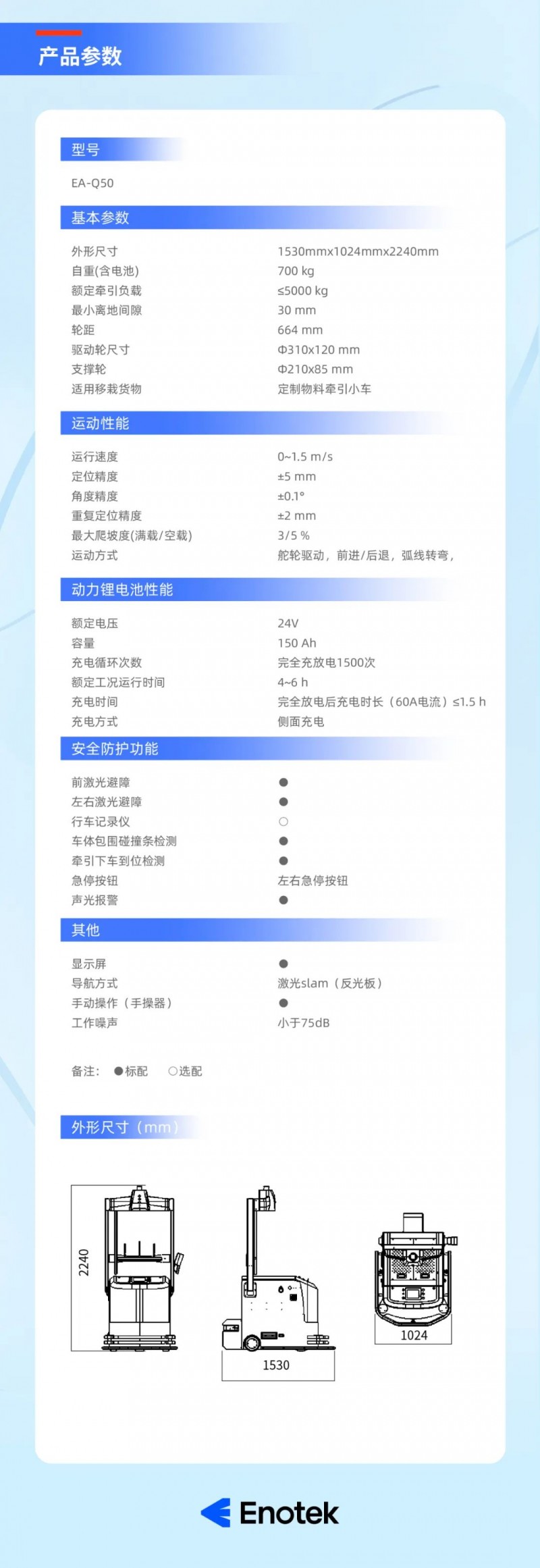 牵引式AGV EA-Q50详细参数,请参见以下参数表: