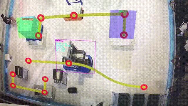 RoboView 可以实现对场景内的所有状态实时安全监控,包括:外来异物(非作业人员、作业人员进入非安全区域、AMR 脱离预设任务轨迹、非作业 AMR 等)侵入监控、货物状态监控、AMR 路线障碍物检测、其他联动设备的监控(如大型货架,升降电梯等)。