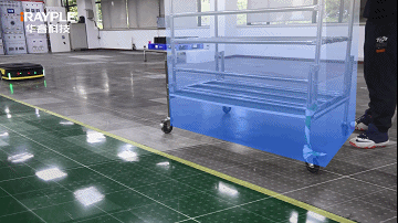 在自动化程度不高,载具人工摆放不平整的情况下,利用载具识别技术,在货架位置和角度均有偏差的情况下进行货架的精准对接;避免载具摆放不整齐导致无法搬运运行停滞的情况,大大提升AMR运行效率。
