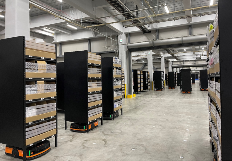2021年,海康机器人助力日本知名服装集团应对海量订单,迎战换季痛点。在11000㎡的智能仓库,共同部署181台智能移动机器人。双排货架密集存储,额外拓展10%的库容。“货到人”作业模式,节省占总工时40%的无效行走,员工只需在工作站操作即可完成货品拣选、上架等,大幅提升工作效率。项目实现了各类单品的高效、精准管理和调拨。