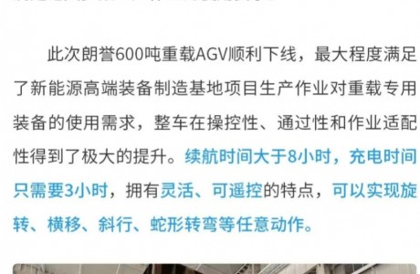 朗誉600吨重载AGV下线。