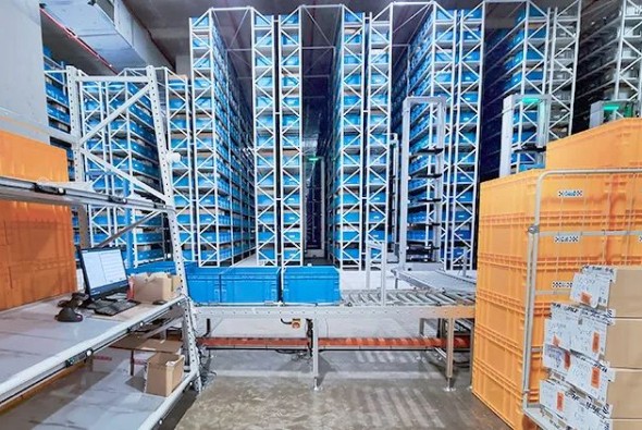 YCH与海康机器人强强联手,引入伸缩型料箱机器人CTU、机器人控制系统RCS以及智能仓储管理系统iWMS组成的料箱到人解决方案。
