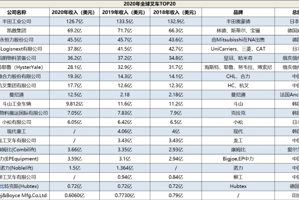 丰田、凯傲、永恒力、三菱等叉车巨头均已入局!