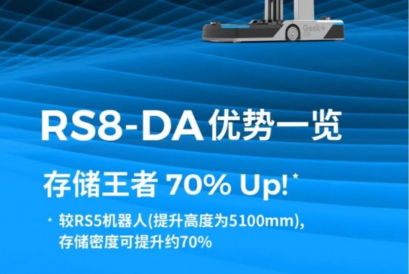 全球AMR引领者极智嘉(Geek+)今日重磅发布一款最大提升高度达8145mm的全新货箱机器人RS8,刷新业内货箱机器人高度极限!