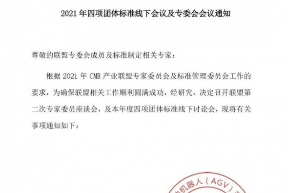 关于召开工业应用移动机器人2021年四项团体标准线下会议及专委会会议的通知