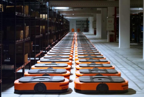 “地狼”是京东物流自主研发的一种典型的搬运式货到人拣选系统,利用地狼AGV将货架搬运至固定的工作站以供作业人员拣选。