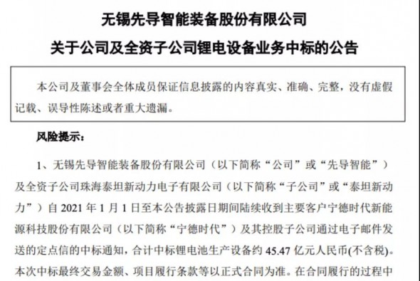 本次中标有利于公司及子公司在新能源电池领域的业务拓展,提高公司收入规模及盈利能力。