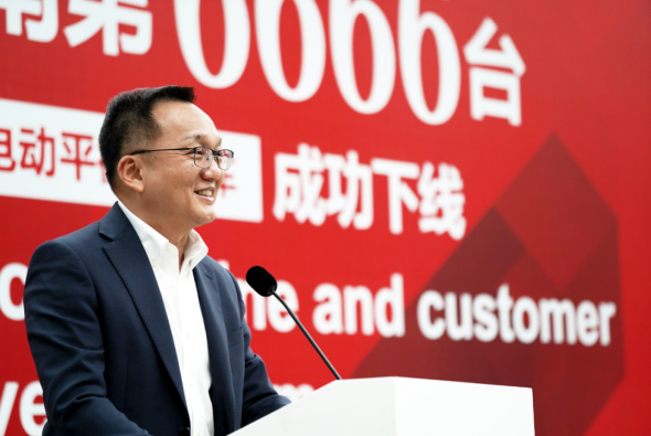 济南工厂第6666台林德3.5吨电动平衡重叉车下线仪式在济南莱芜智慧工厂盛大举行