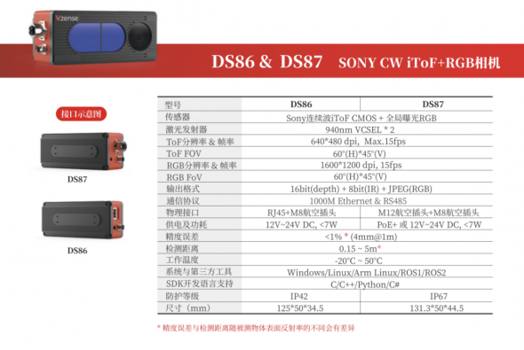 瞄准AGV/AMR领域-维感科技发布高性价比RGB-D ToF相机DS86/87