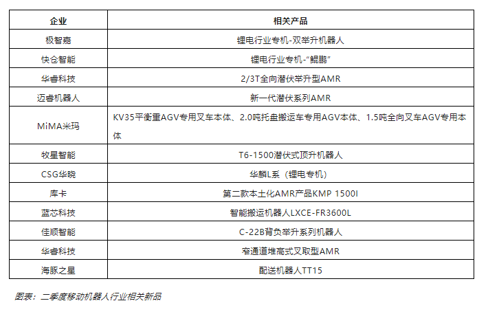 根据新战略移动机器人产业研究所统计,二季度,一共有12家企业发布了约15款新产品,涵盖多种类型。由于新能源行业的持续向好,极智嘉、CSG华晓及快仓都相继推出了锂电行业专机,除此之外,其他大部分是在已有系列产品上的迭代跟升级。