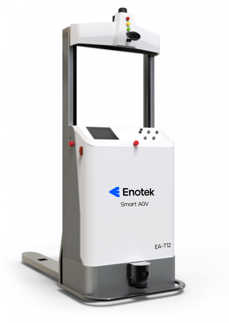 产品采用激光导航技术,具有最小通道通行能力和最小转弯半径,自重700kg,额定荷载达1200kg,驱动方式为单舵轮驱动,可前进、后退、弧线转弯,并通过了TUV的CE认证。