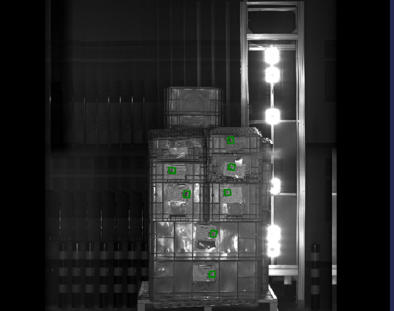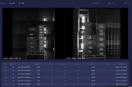 华睿科技通过追踪读码相机画面内货物的移动,将所有相机采集的图片进行标定、对比、融合,完整展示堆垛货物读码情况。