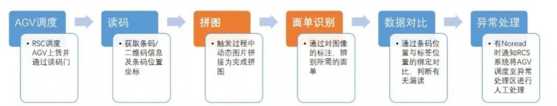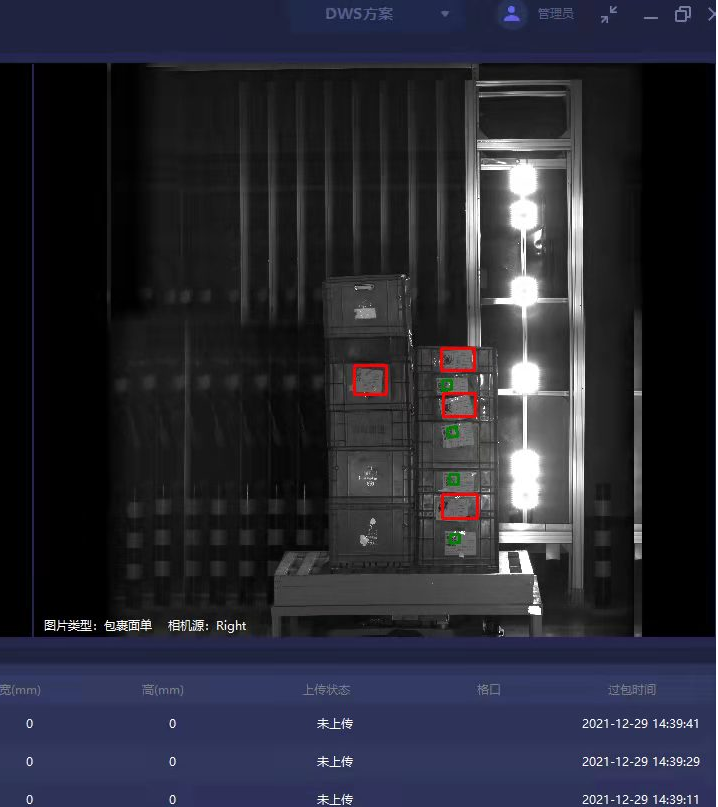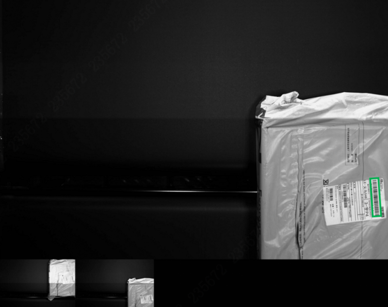 出入库读码门通过在货物两侧安装相机,当托盘整体通过读码门时,每台相机实时读码,并进行目标跟踪。当货物离开时,汇总读到的条码,同时将每台读码相机的跟踪信息进行汇总,实现码垛整体全景拼图显示。融合先进的深度学习面单/物体定位算法,实现条码和货物的绑定,当出现未读码的包裹时,提示异常,引导进行人工补录。