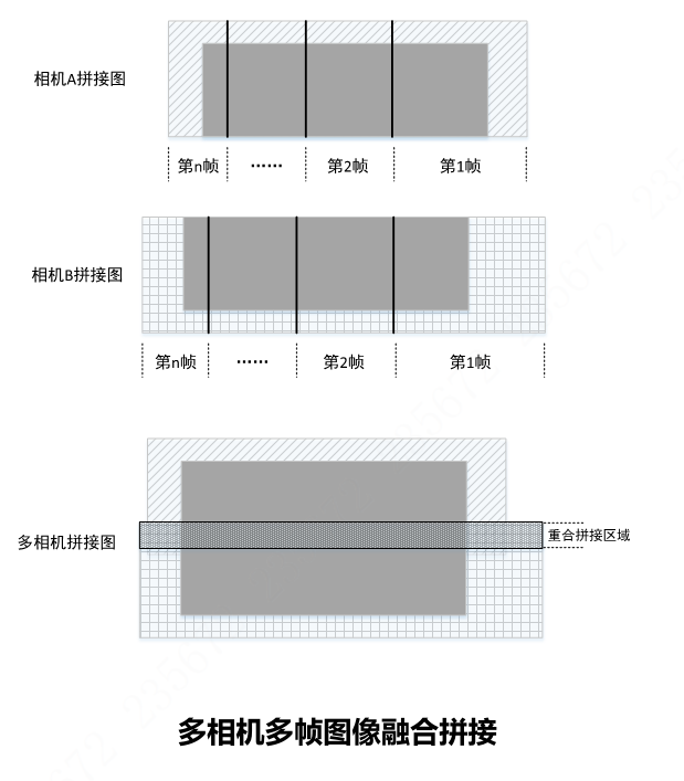 通过大景深相机融合先进拼图算法, AGV在不同位置通过时,可精确计算不同相机之间的重合区域,进行准确的多相机拼接。