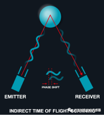 iToF(Indirect Time of Flight)的光发射器发出连续的经过调制的光信号,测距依据的是发出的光和接受到的反射光之间的相位差。