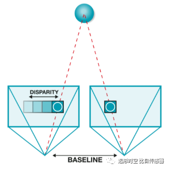 双目视觉相机借鉴了人类双眼的原理。它使用并排的,光轴平行的两台相机来观测物体并感知被观测到物体的深度信息。两台相机之间的距离是固定的,而两台相机光学中心之间的距离称为基线距离。两台相机分别从不同的角度拍摄到被观测物体。被观测物体距离相机越近,其在两台相机上拍摄到的两幅图像中的相对位置变化就越明显。这种相对的位置变化被称为视差。根据两台相机拍摄产生的视差信息,就可以通过算法计算生成深度图。对于被观测物体的照明,则有被动和主动两种方式。被动方式使用外界环境光线包括普通日常人造光源来进行照明以便于成像。而主动方式则是在相机的拍摄视野范围内使用发光元件发射随机的图案打到待观测物体表面,从而大大增加物体表面上便于用来识别和生成深度图的纹理信息。一般地,多使用可生成伪随机图案的激光器,也可使用结构光。双目视觉方式的优点包括对外界光线剧烈变化的鲁棒性,以及多台设备之间互相完全不会发生影响和干扰。双目深度相机的成本根据检测范围、距离和要求的精度不同而变化。