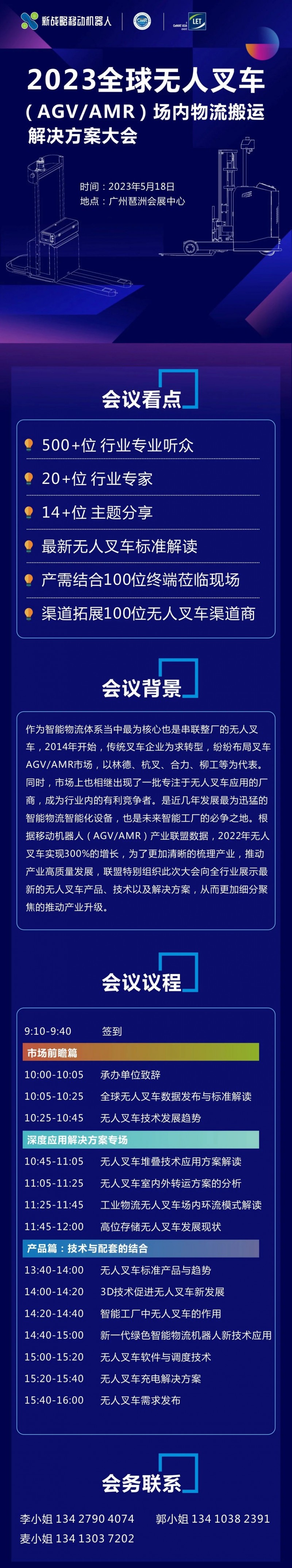 “2023全球无人叉车(AGV/AMR)厂内物流搬运解决方案大会”将重磅开启,敬请期待!