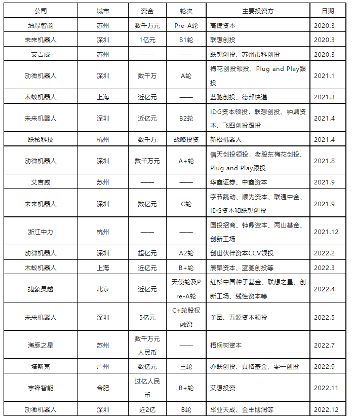 图表:2020-2022国内无人叉车市场融资情况(不完全统计)