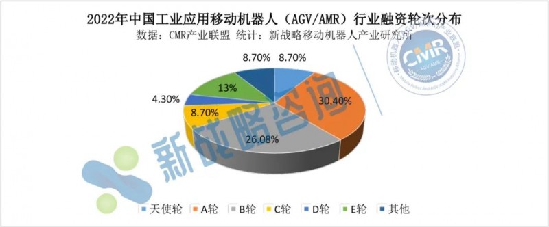 图表:2022年中国工业应用移动机器人(AGV/AMR)行业融资轮次分布