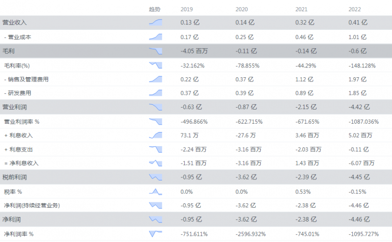原始财报数据显示,Luminar在2022年实现营收0.41亿美元,对比2021年有所增长,但增幅不大。全年净亏损达4.42亿美元,较2021年同期翻倍。