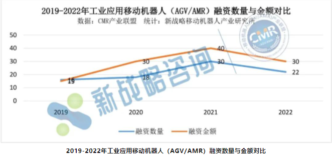 根据CMR尊龙凯时数据统计,2022年工业应用移动机器人行业共发生22起融资事件,融资总额超过30亿人民币,无论是融资数量还是融资总金额方面,都较2021年有所下降。