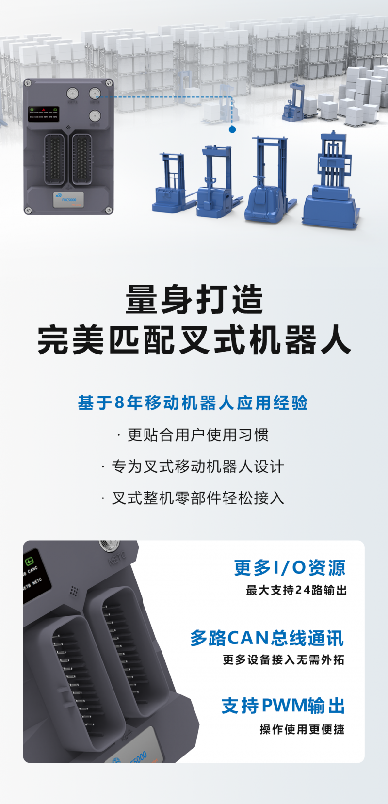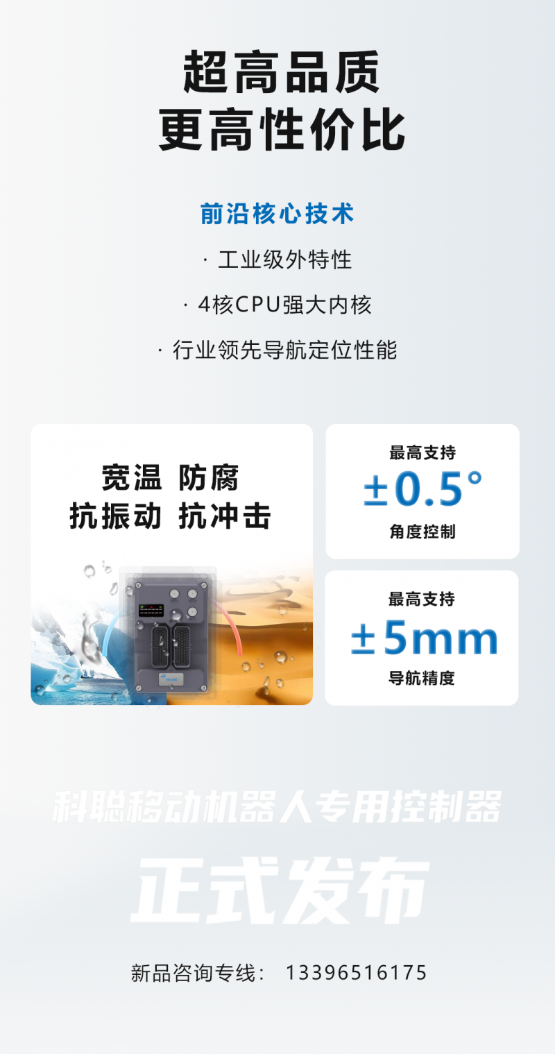 科聪正式推出面向移动机器人细分领域专用控制器——AMR移动机器人控制器和叉式移动机器人控制器。