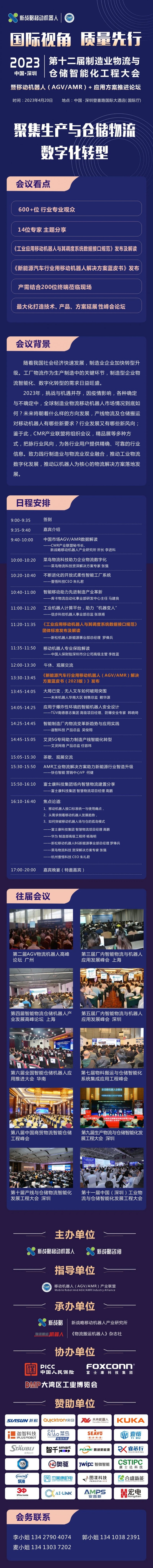 4月20日,新战略移动机器人以及新战略咨询联合主办的“2023第十二届制造业物流与仓储智能化工程大会暨移动机器人(AGV/AMR)+应用方案推进论坛将在深圳重磅举行,论坛上,除14+主题演讲外,还将重磅发布《新能源汽车行业用移动机器人(AGV/AMR)解决方案蓝皮书(2023版)》。同时,《工业应用移动机器人与其调度系统数据的接口规范》将在会上发布!