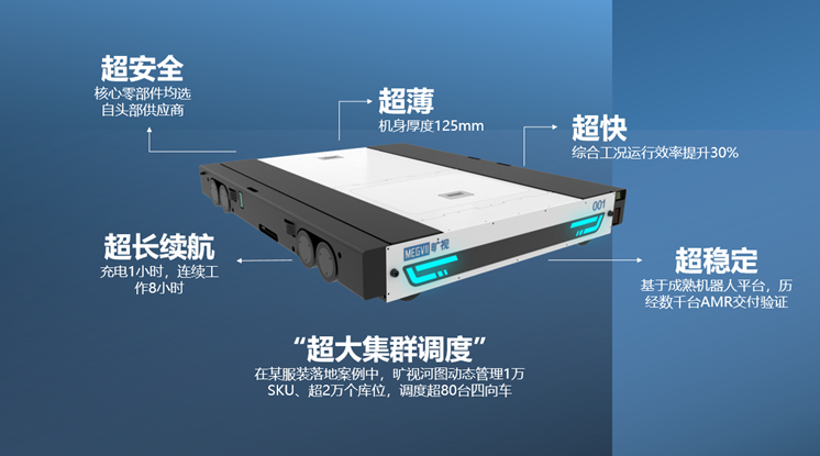旷视四向车还配备6个工业级激光测距传感器,让车体本身成为安全的最后一道防线。针对四向车顶升托盘偏移可能会发生碰撞、磕碰等风险,旷视四向车增加托盘检测传感器,以便随时调整。旷视还使用磷酸铁锂和钛酸锂这两种在常温和低温下具有高安全性的电池,使车体始终处于比较安全的状态。