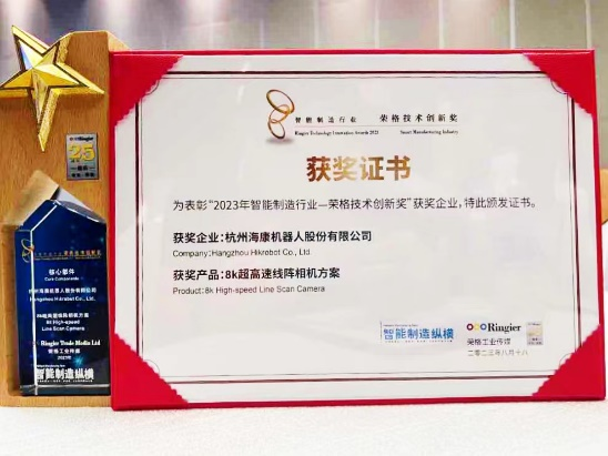 海康机器人8k超高速线阵相机方案荣获“荣格技术创新奖”