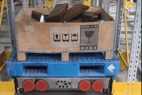 由于四向穿梭车是在立库的轨道中行驶,为避免货物间碰擦,这就要求四向穿梭车在货物搬运时必须精准无误。玑域智能为四向穿梭车加装传感器,有效检测托盘姿态。一旦发现搬运货物姿态偏置,超出安全范围,四向穿梭车会立马急停,并发出警报,由工人检查现场状态,恢复运行。