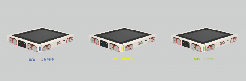 在车体四角设计状态灯,黄色——异常;蓝色——等待;绿色——正常,用户第一时间可以通过警示灯颜色了解车体的状态,保障立体库的稳定运行。