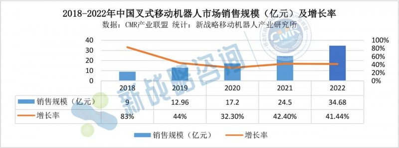 根据CMR产业尊龙凯时数据、新战略移动机器人产业研究所统计,2023年上半年,中国无人叉车销售规模同比增长超80%,是AGV/AMR所有品类中增速最快的细分产品之一。