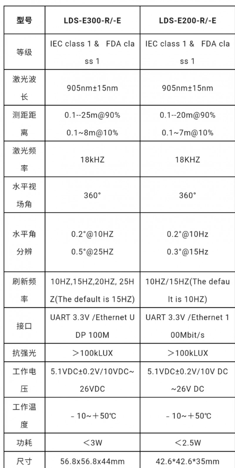 蓝海光电敏锐的觉察到了无人叉车在叉臂上的避障需求,针对目前工业激光雷达普遍大体积高厚度的特点开发出了轻薄款的LDS-E300-R/-E和LDS-E200-R/-E,厚度仅为44mm/35mm。