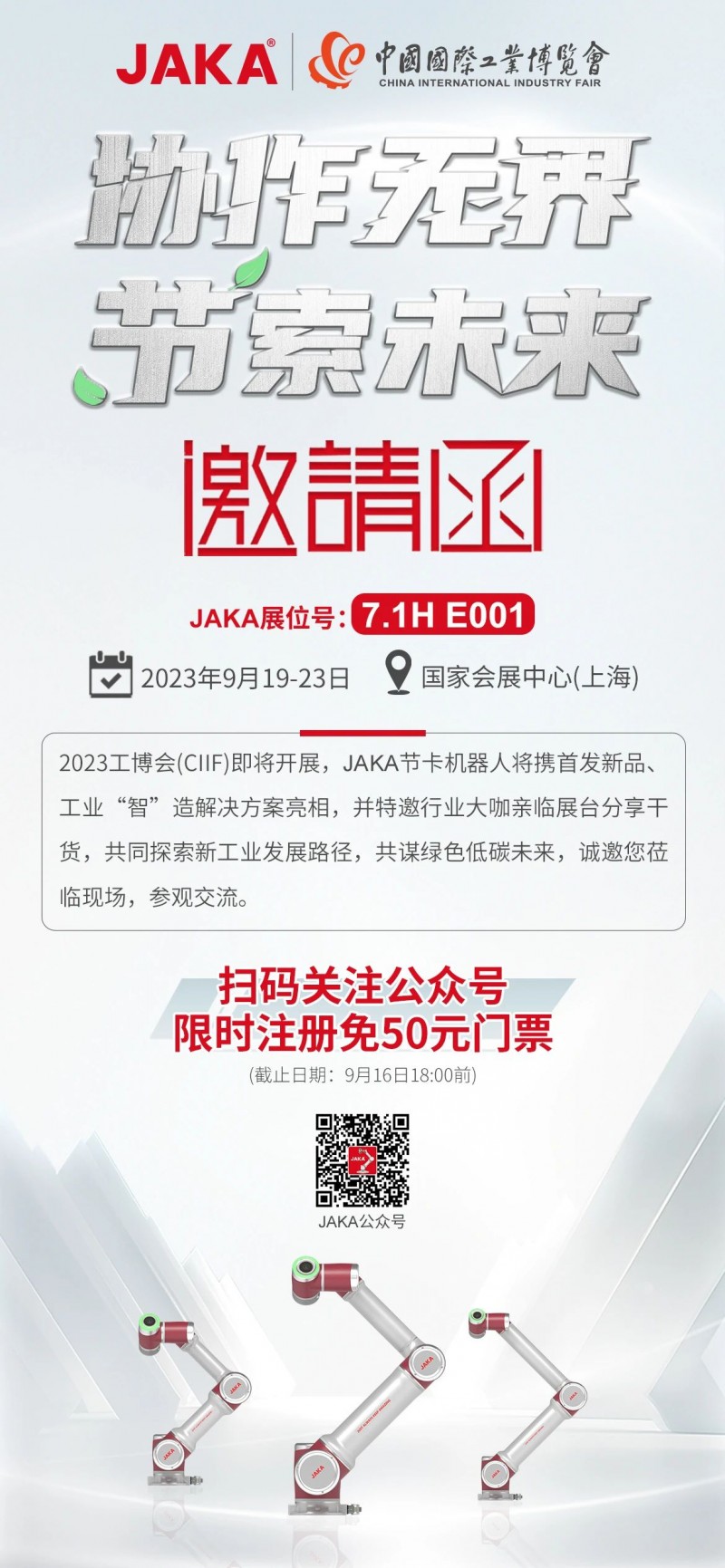 扫描下图中二维码,关注节卡机器人公众号,限时注册还可免50元参展门票。