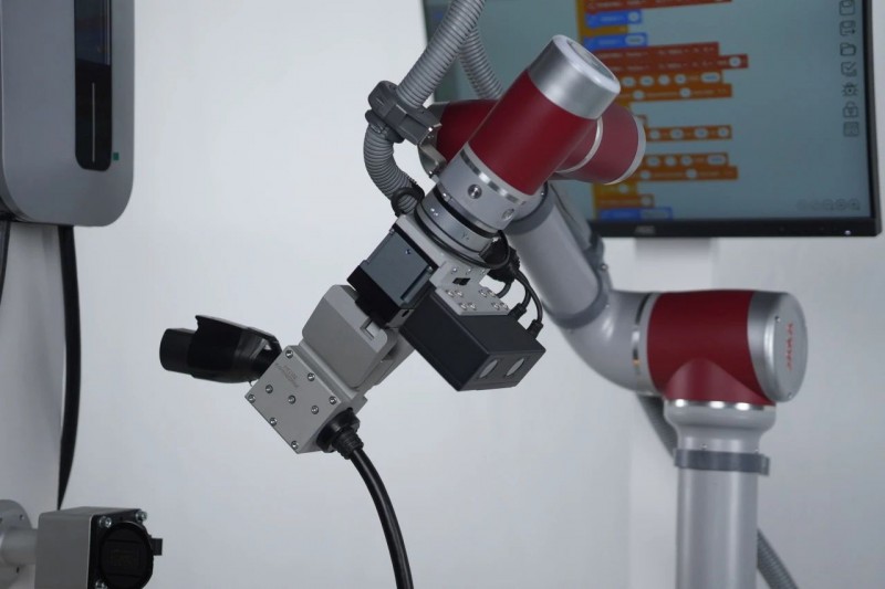 除了在生产环节追求智能化作业,新能源产业也十分注重用户体验。例如,各大新能源车企业纷纷发力便捷充电“最后一公里”,新能源车充电设施向着自动化、网络化、智能化不断发展。在智能充电的最后一环,节卡机器人创新开发了新能源车自动充电应用,用户任意角度停车,节卡机器人与3D相机也能“手眼”配合准确识别规划路径,自动完成电动汽车插拔充电过程,助力企业构建高质量运营服务,为终端用户提供智能化车辆充电体验。