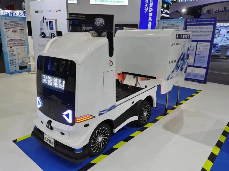 在近期举办的第23届中国国际工业博览会上,行深智能与奥威科技合作推出的“超级电容快充移动充电机器人”亮相,这是行深智能在推出无人物流车、无人小巴、服务机器人等产品后又一种新的无人驾驶技术应用。
