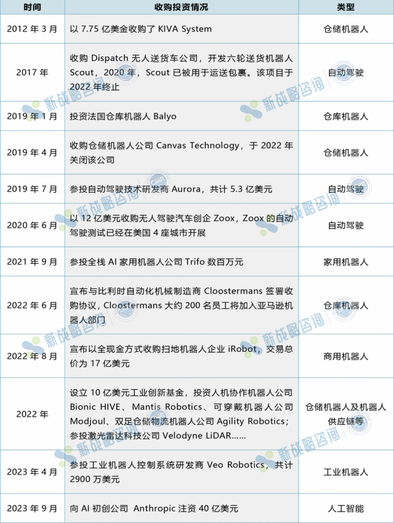 从2012年至今,在探索内部物流自动化的过程中,亚马逊通过不断的投资收购来扩大自己的机器人军团,据统计,在收购和投资机器人、无人机及自动驾驶相关创业公司上,亚马逊已累计斥资近百亿美元。