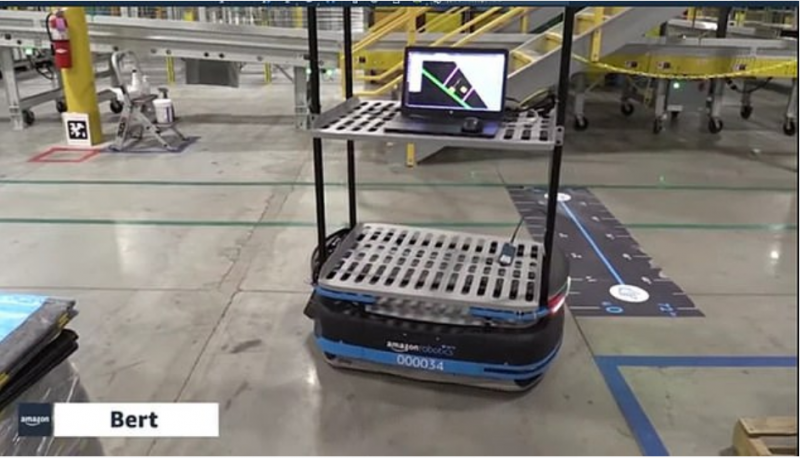 其中值得注意的是,区别于kiva需要依靠二维码实现路径导引,Bert通过搭载更多的传感器,感知能力进一步提升,亚马逊希望有了Bert,机器人不再需要局限于限制区域,同时,机器人可以更好地与员工协作。但后续未见Bert在亚马逊内部落地应用。
