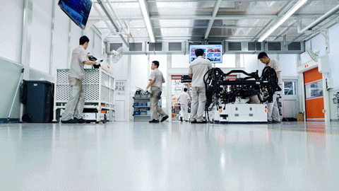 “纵观整个工厂,底盘装配、整车装配等线体全部采用工位可变、布局可调的线体AMR,显著提升生产线的柔性化水平,灵活性更高,降低异常停线时间,物流作业效率提升55%。