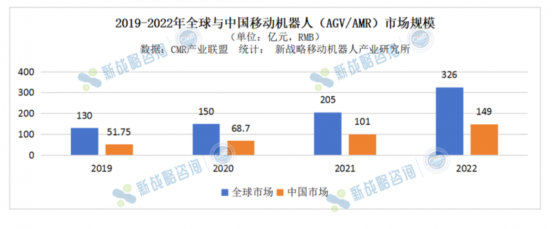图表:2019-2022年全球与中国移动机器人(AGV/AMR)市场规模